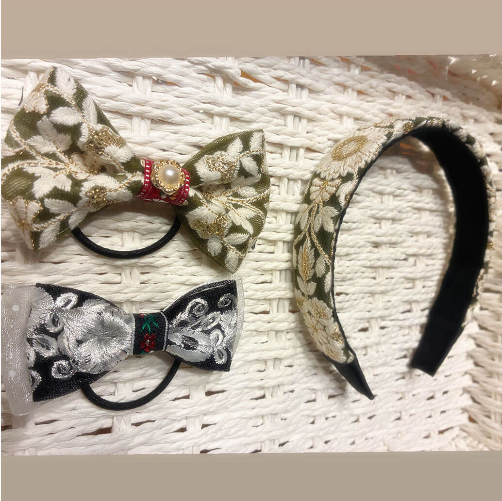 クリスマスカラーのインド刺繍で作るヘアーアクセサリー
