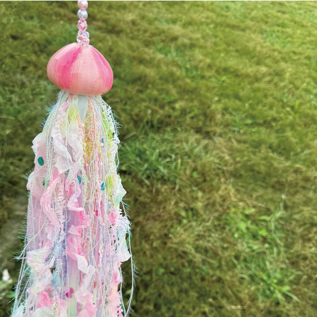 手染め毛糸とウニ殼でクラゲが作れるワークショップ